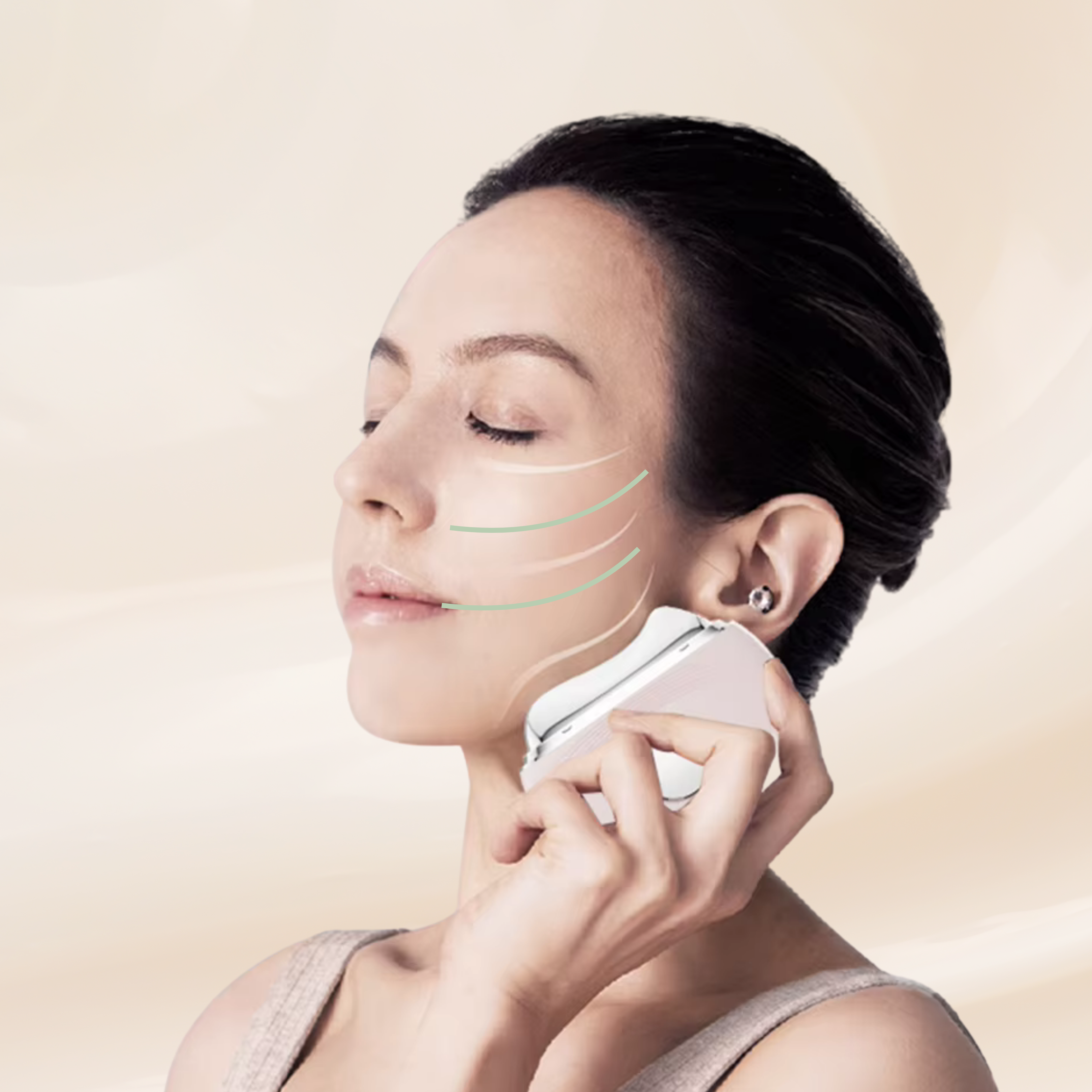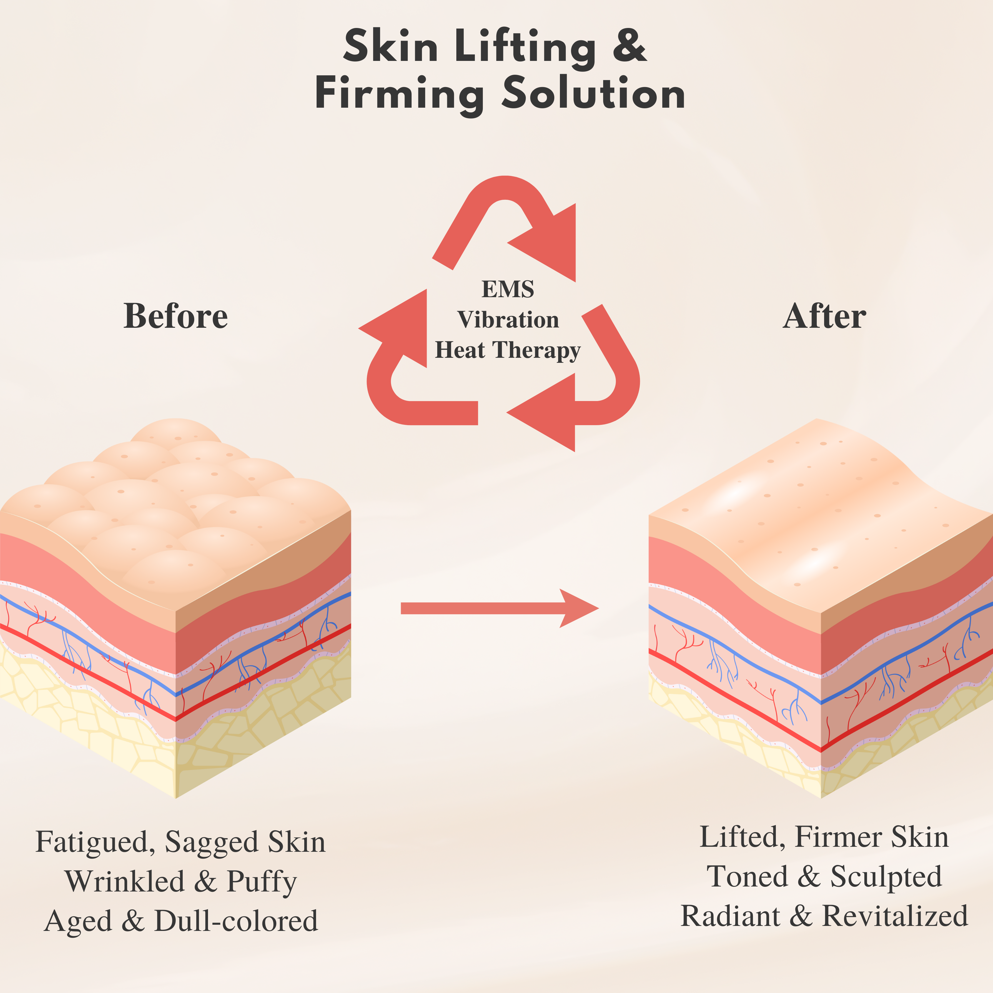 - Utilizes micro-vibrations precision and heat therapy to target loose skin areas